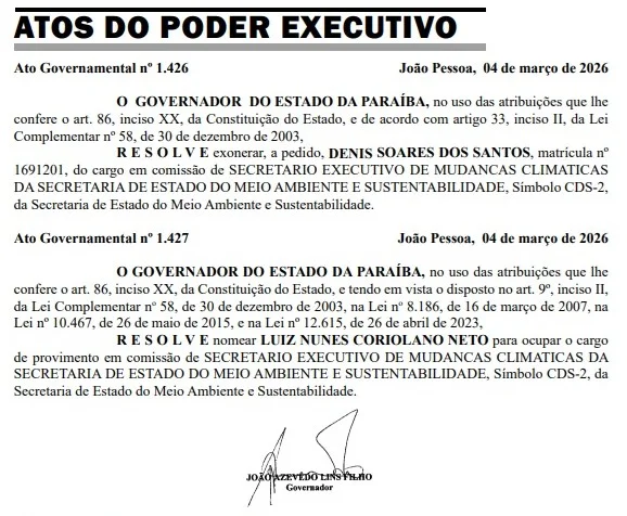 Com a saída de Denis, o governador João Azevêdo nomeou Luiz Nunes Coriolano Neto para o cargo de secretário executivo de Mudanças Climáticas. A indicação foi feita pelo deputado federal Luiz Couto (PT).